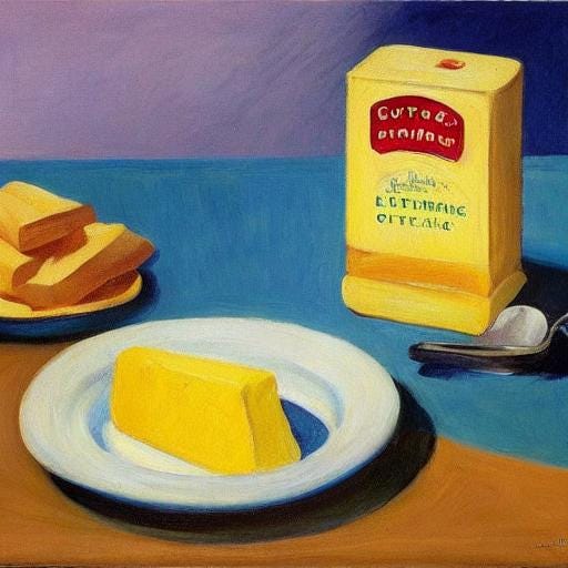 “Let’s eliminate the butters that won’t work for you,” Ned said. “Hm. Forget the herb butters, the truffled stuff, the vegan substitutes, the heavily salted ones. Are you sure that a lightly salted butter won’t do? Some bakers swear by it for pastries.”